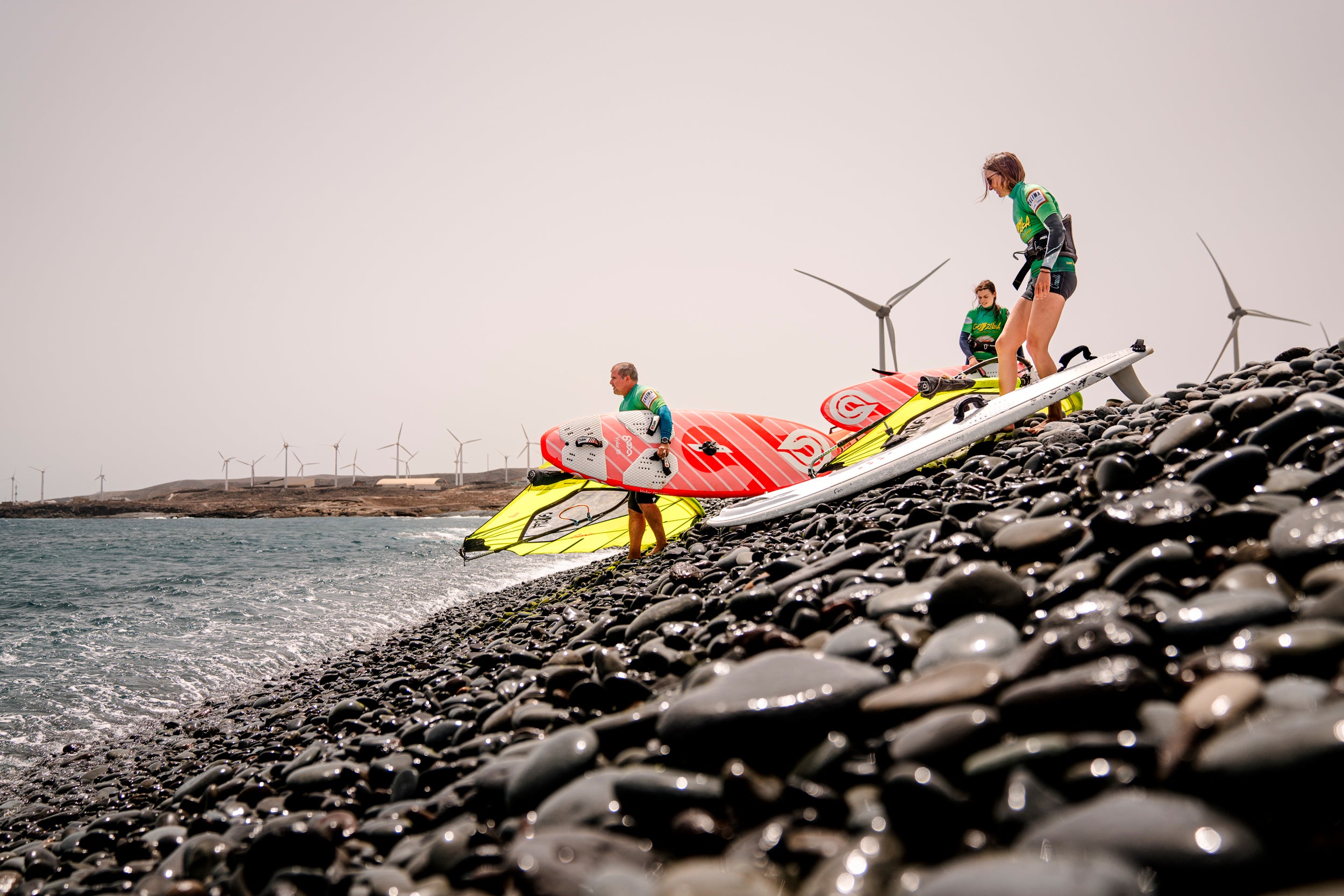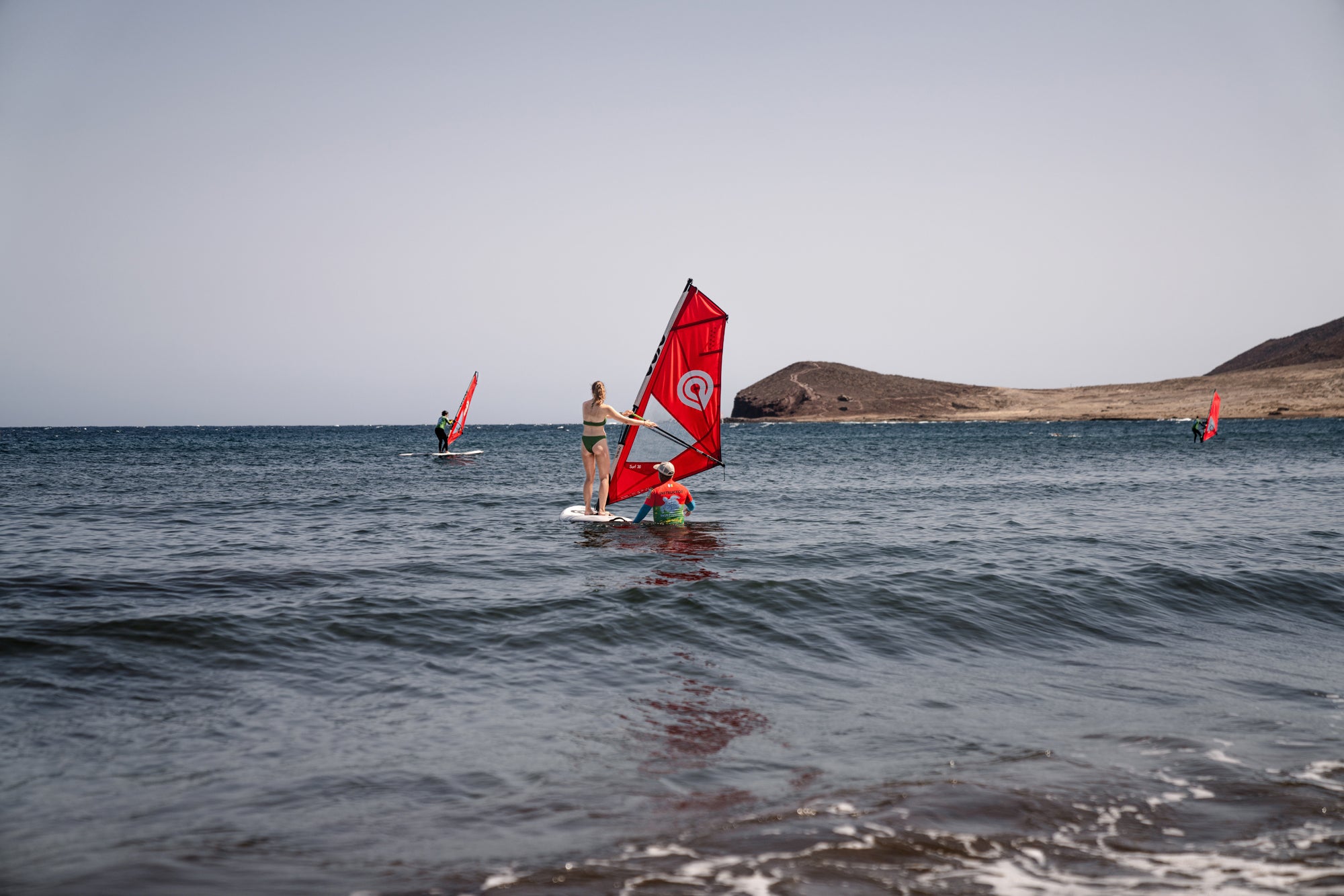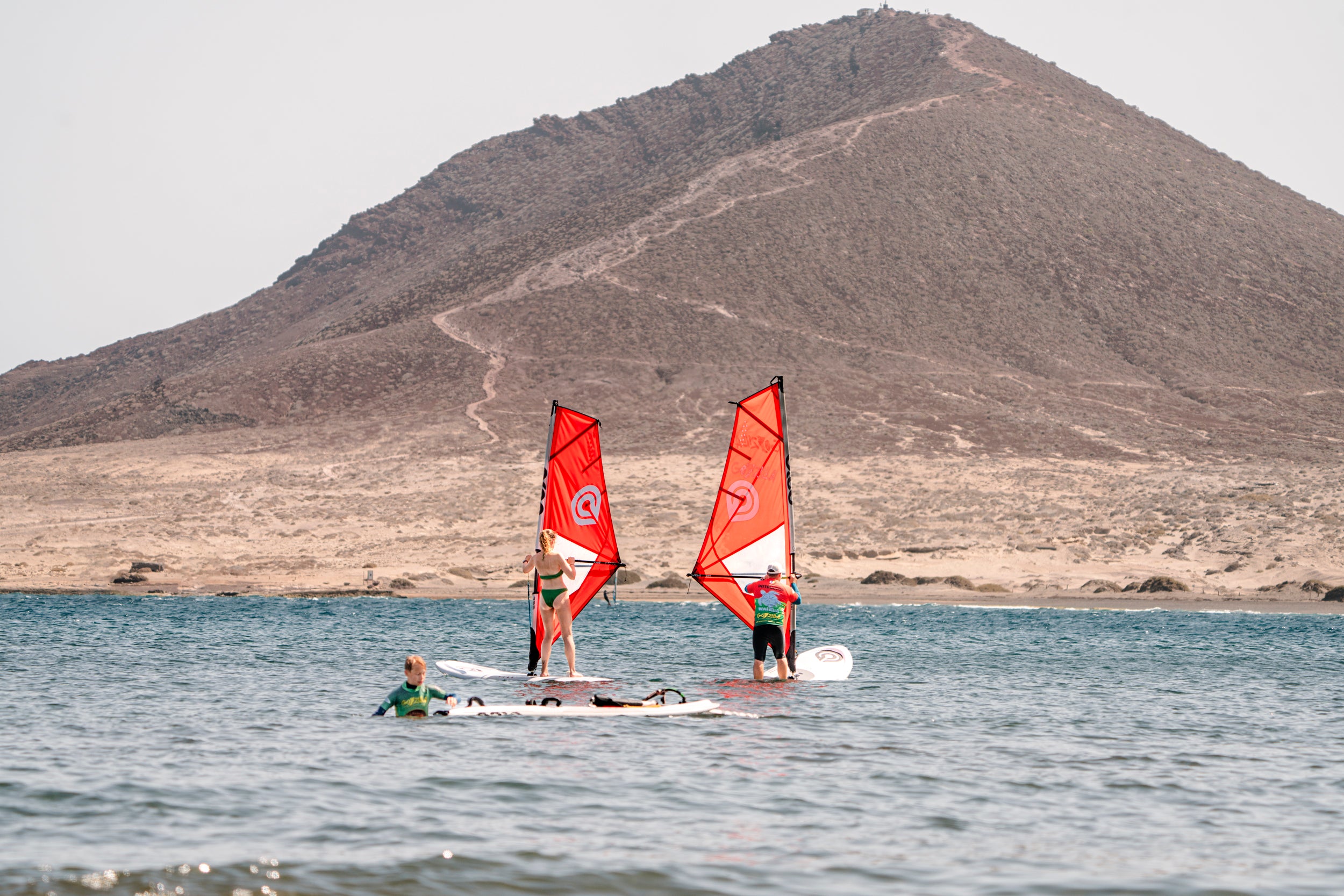 La Escuela de Windsurf Godzilla en El Médano imparte clases para todos los niveles, desde los primeros pasos sobre la tabla hasta programas de entrenamiento para riders profesionales.