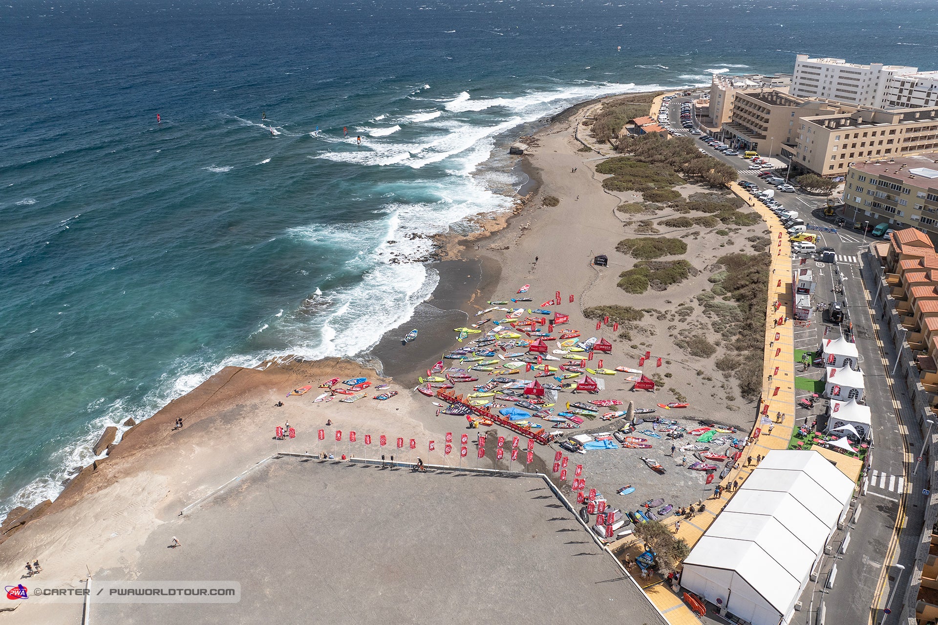 “El Cabezo es un lugar increíble. La ola es de izquierdas y se forma en un point break, normalmente puedes hacer tres o cuatro giros frontside. El viento es un poco más ligero que en Pozo. Navego en olas de 4,2 m o 4,7 m la mayor parte del tiempo. Los saltos son realmente geniales en El Médano, la ola viene directamente hacia ti, por lo que puedes ir muy alto. Podemos esperar ver dobles forwards súper rápidos y backloops enormes, pero creo que la forma de surfear las olas será lo más impresionante, ya que muchos navegantes lo prefieren... ¡solo ten cuidado con las rocas!” - Oficial de prensa Ed Sinclair PWA