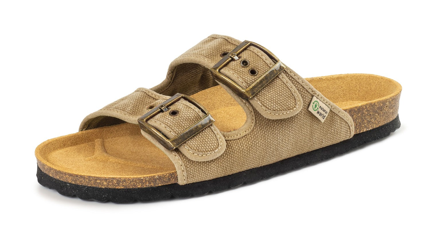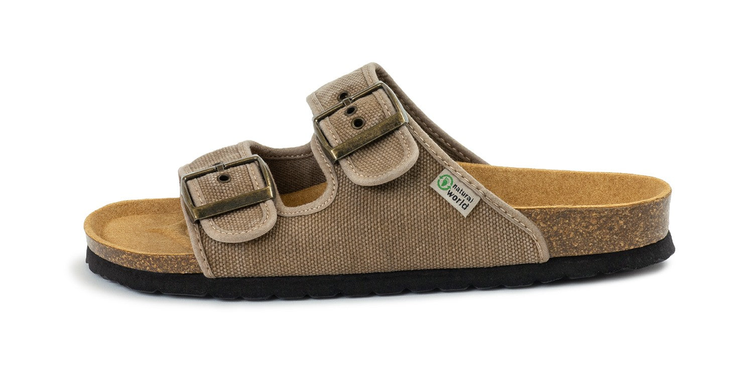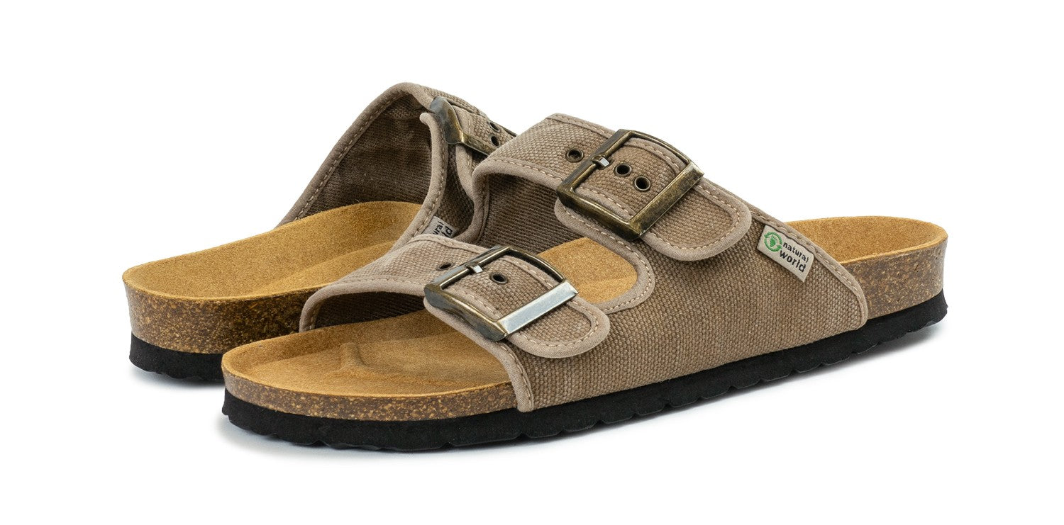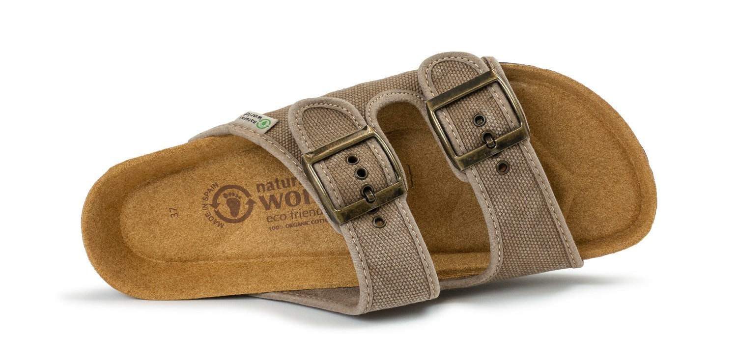 At Natural World Eco we take care of every detail to achieve quality, comfort, ecological awareness and fashion in our footwear. Our new bio vegan sandals Tropic are going to become an essential for both men and women. Thanks to their timeless design, Tropic sandals are very easy to combine with any outfit and style. These Bio sandals have been manufactured in Spain with organic cotton and with cork and recycled eva rubber for the outsole. It should be noted that our Tropic sandals does not have any animal origin component and has the PETA certificate. As part of our brand philosophy, these unisex vegan sandals come in a recycled cardboard box, something essential for those who want to contribute positively to the environment. Choose your color and be surprised by its comfort.