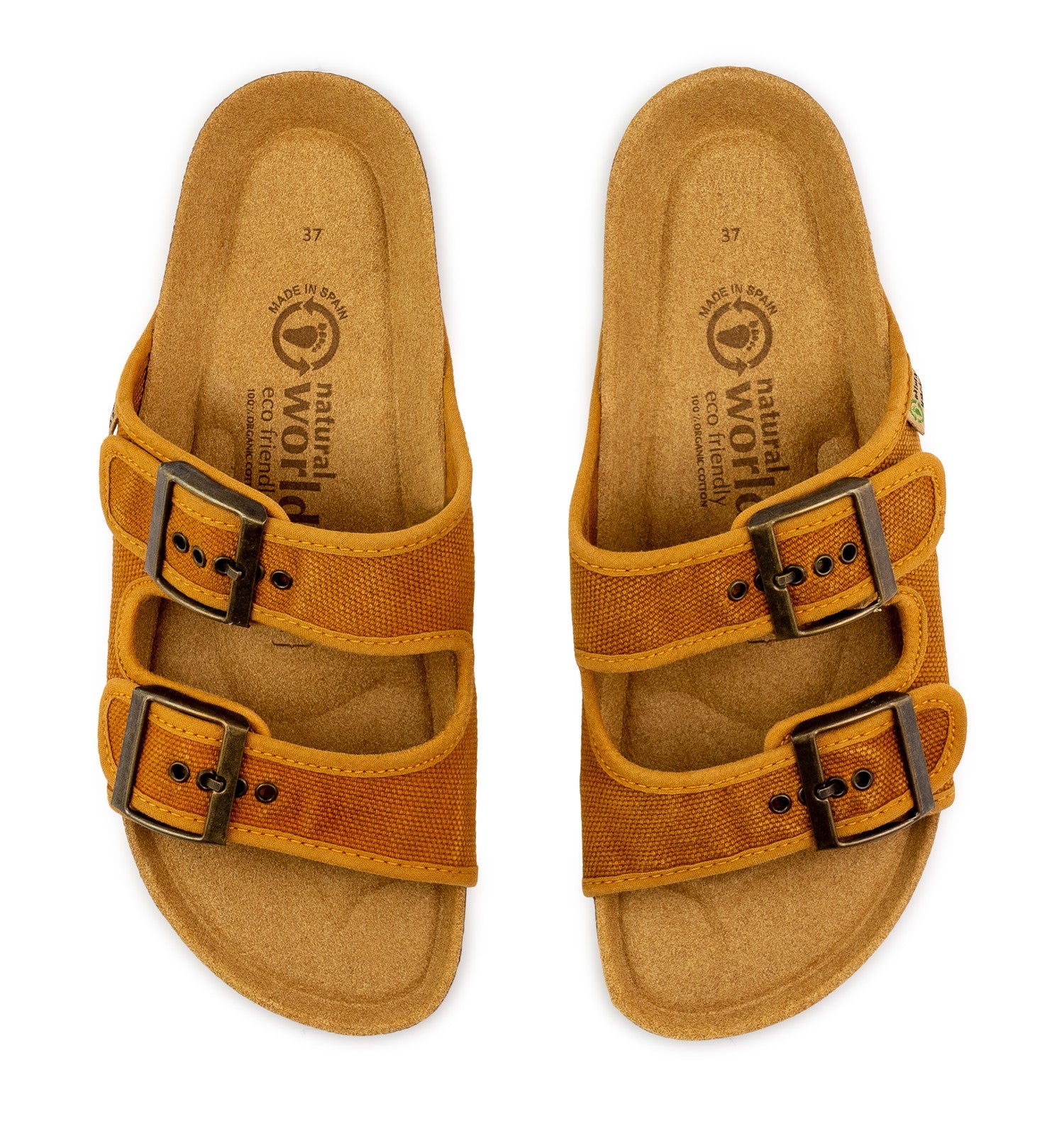 At Natural World Eco we take care of every detail to achieve quality, comfort, ecological awareness and fashion in our footwear. Our new bio vegan sandals Tropic are going to become an essential for both men and women. Thanks to their timeless design, Tropic sandals are very easy to combine with any outfit and style. These Bio sandals have been manufactured in Spain with organic cotton and with cork and recycled eva rubber for the outsole. It should be noted that our Tropic sandals does not have any animal origin component and has the PETA certificate. As part of our brand philosophy, these unisex vegan sandals come in a recycled cardboard box, something essential for those who want to contribute positively to the environment. Choose your color and be surprised by its comfort.