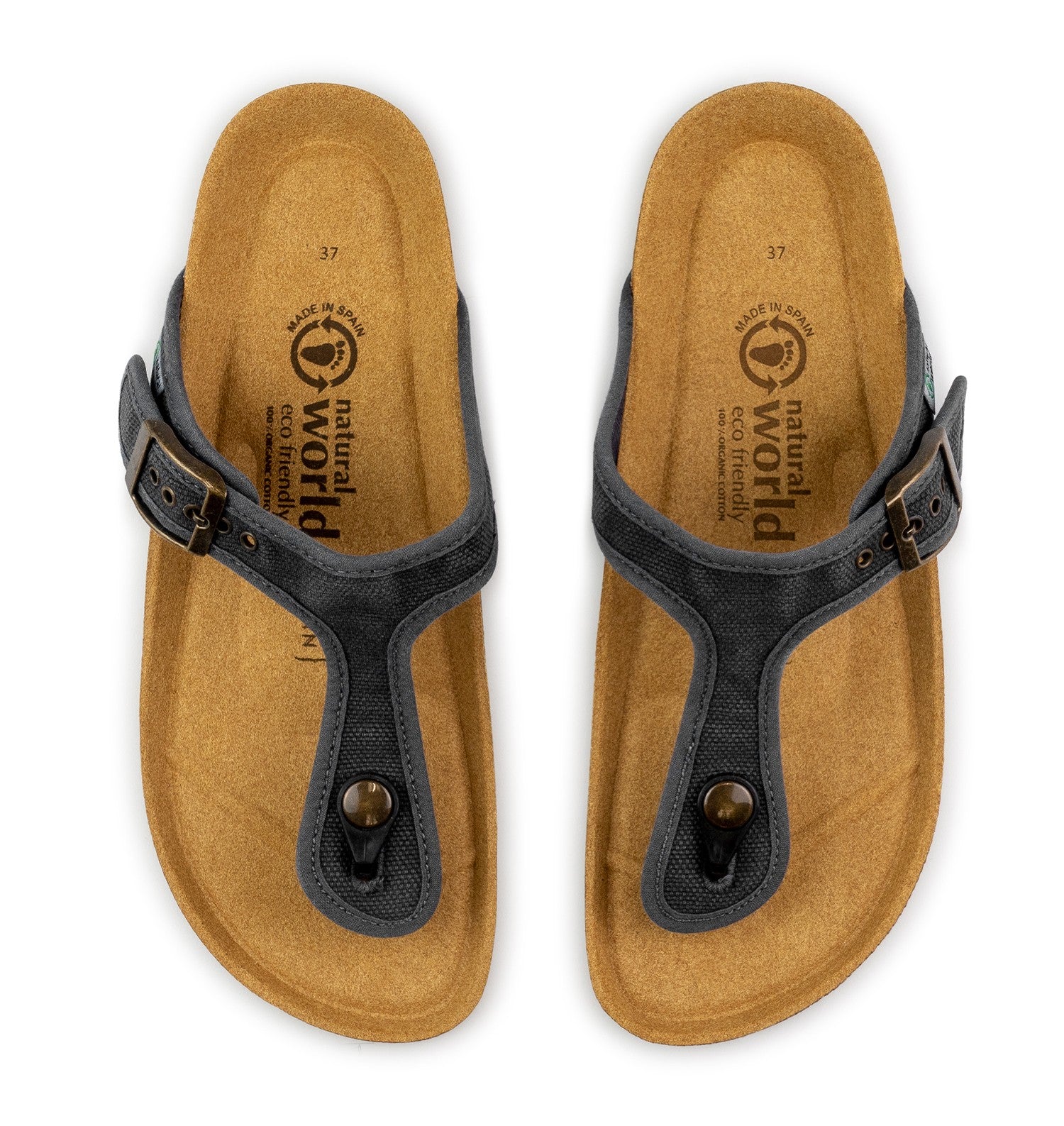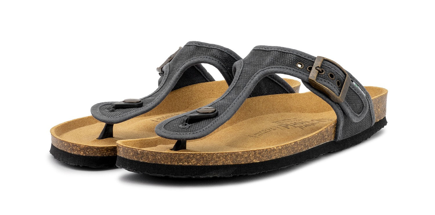 At Natural World Eco we take care of every detail to achieve quality, comfort, ecological awareness and fashion in our footwear. Our new bio vegan sandals Tropic are going to become an essential for both men and women. Thanks to their timeless design, Tropic sandals are very easy to combine with any outfit and style. These Bio sandals have been manufactured in Spain with organic cotton and with cork and recycled eva rubber for the outsole. It should be noted that our Tropic sandals does not have any animal origin component and has the PETA certificate. As part of our brand philosophy, these unisex vegan sandals come in a recycled cardboard box, something essential for those who want to contribute positively to the environment. Choose your color and be surprised by its comfort.