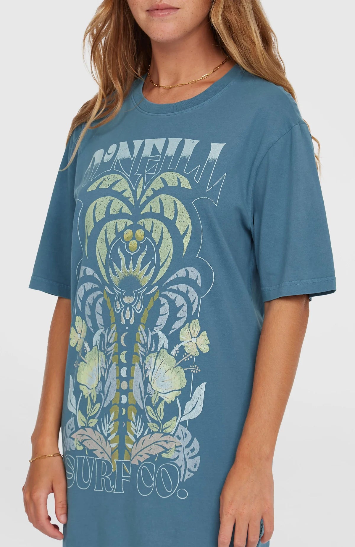 The Beach Vintage Tee Dress is your new go-to, for wind-downs and laidback hangouts, with its loose fit and roomy side slit design. The midi-length dress works as a quick cover-up, but easily slots into your everyday rotation, thanks to the ribbed collar, dropped shoulder, and the beachy water-based print on the chest. Made with medium-weight carded jersey, it’s finished with garment dyeing, and a garment softener wash for extra comfort.