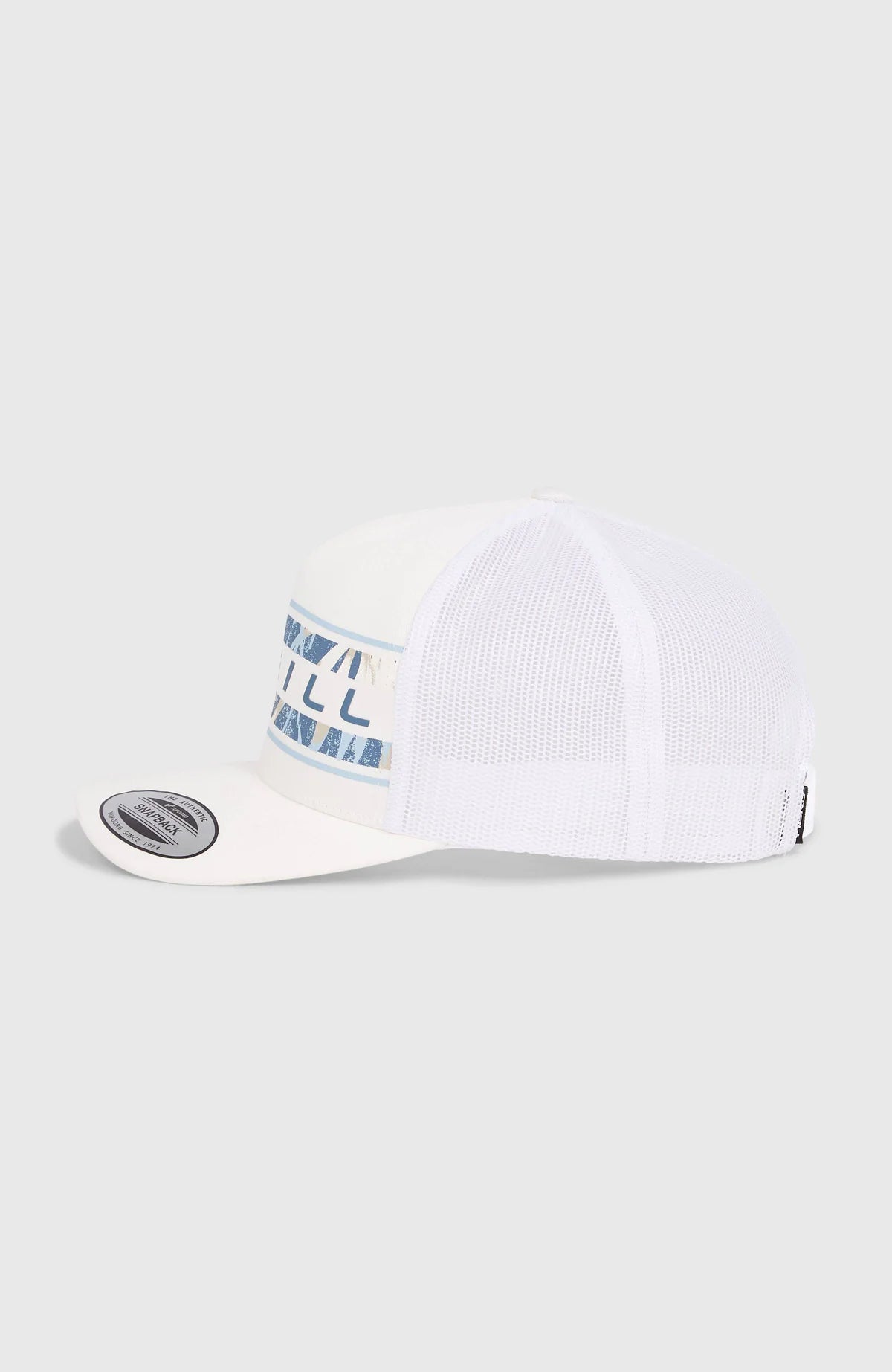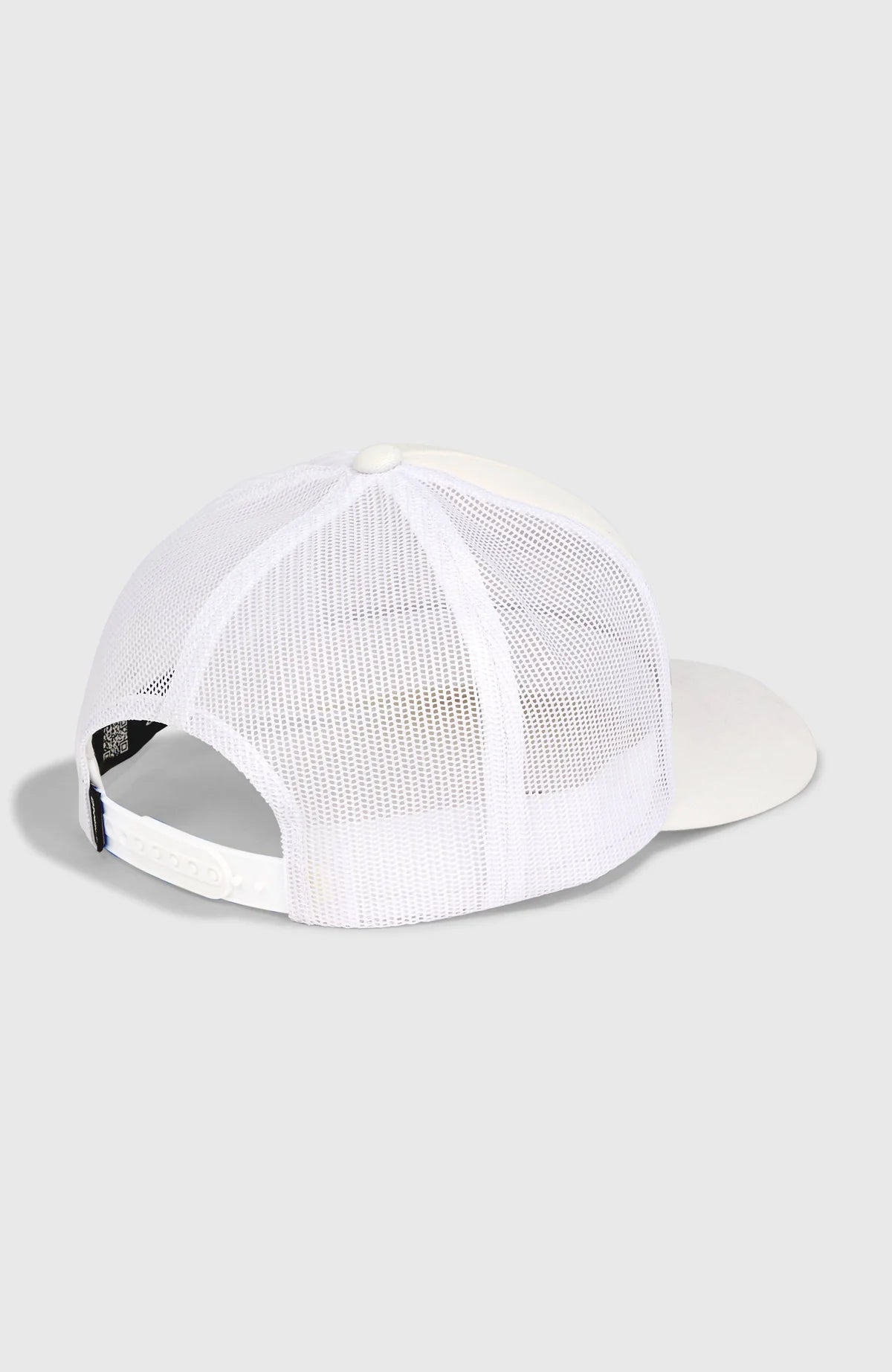 he Flower Trucker Cap features branded artwork on the front. This five-panel trucker-style cap has a curved visor, inner tape, and breathable recycled polyester mesh rear panels. It includes a snapback closure for an adjustable fit and is made with 100% cotton.
