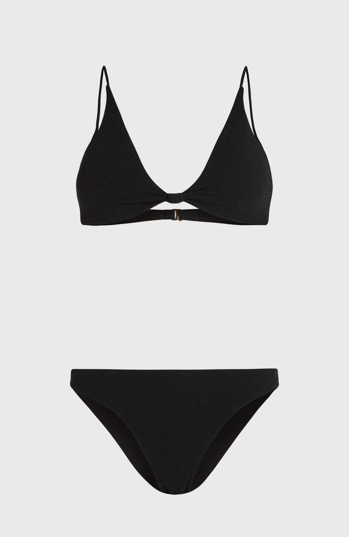 The Pismo Flamenco Bikini Set seamlessly blends timeless style and lasting comfort for your water activities and poolside lounging. Featuring adjustable shoulder straps and removable cup padding at the bust for an optimised fit, the bikini top offers medium support and coverage, pairing smoothly with the cheeky-coverage bottoms. The set is finished with clean lines and beautiful knot detailing on the top.