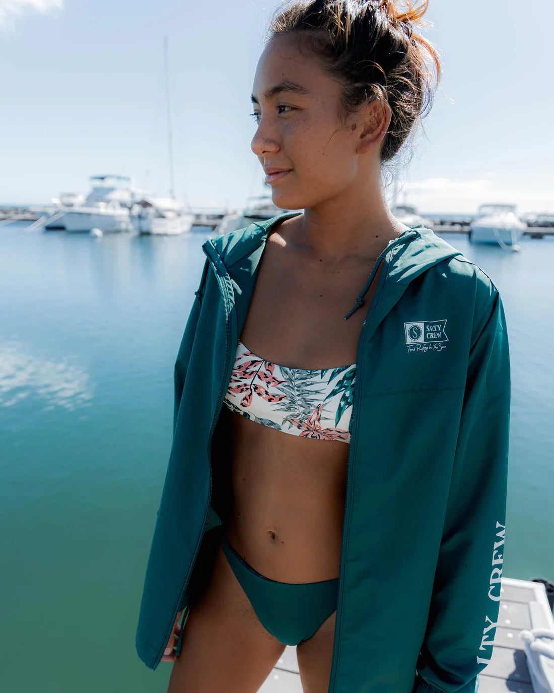 - Zipper front closure, front welt pockets, drawcord encased at hood