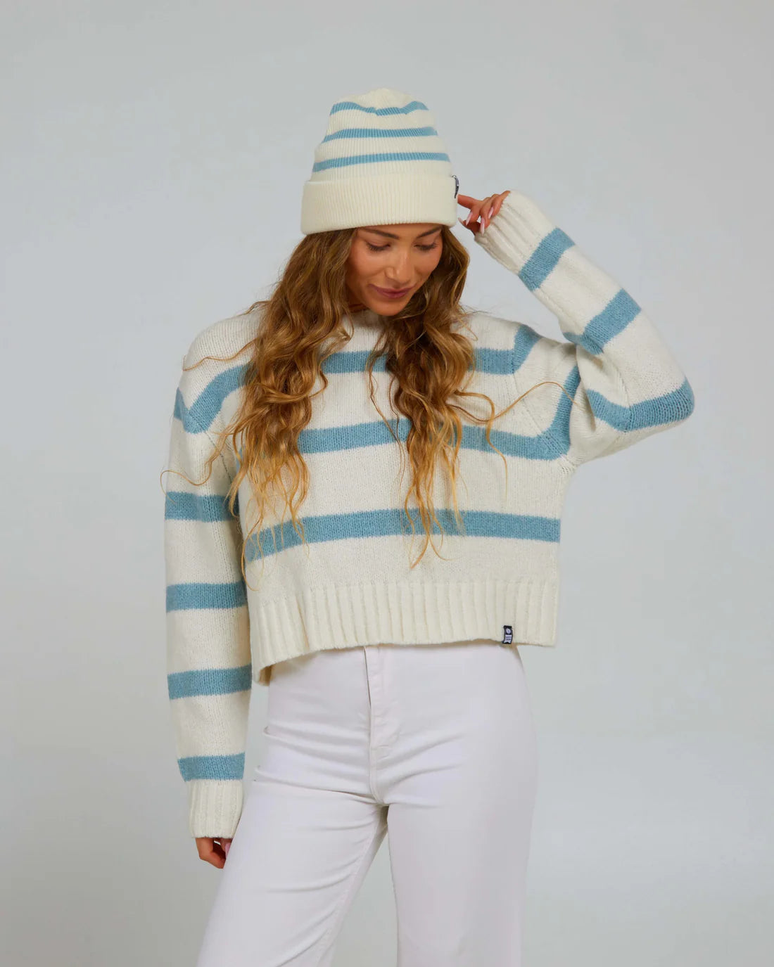 - Stripe beanie with turnback cuff