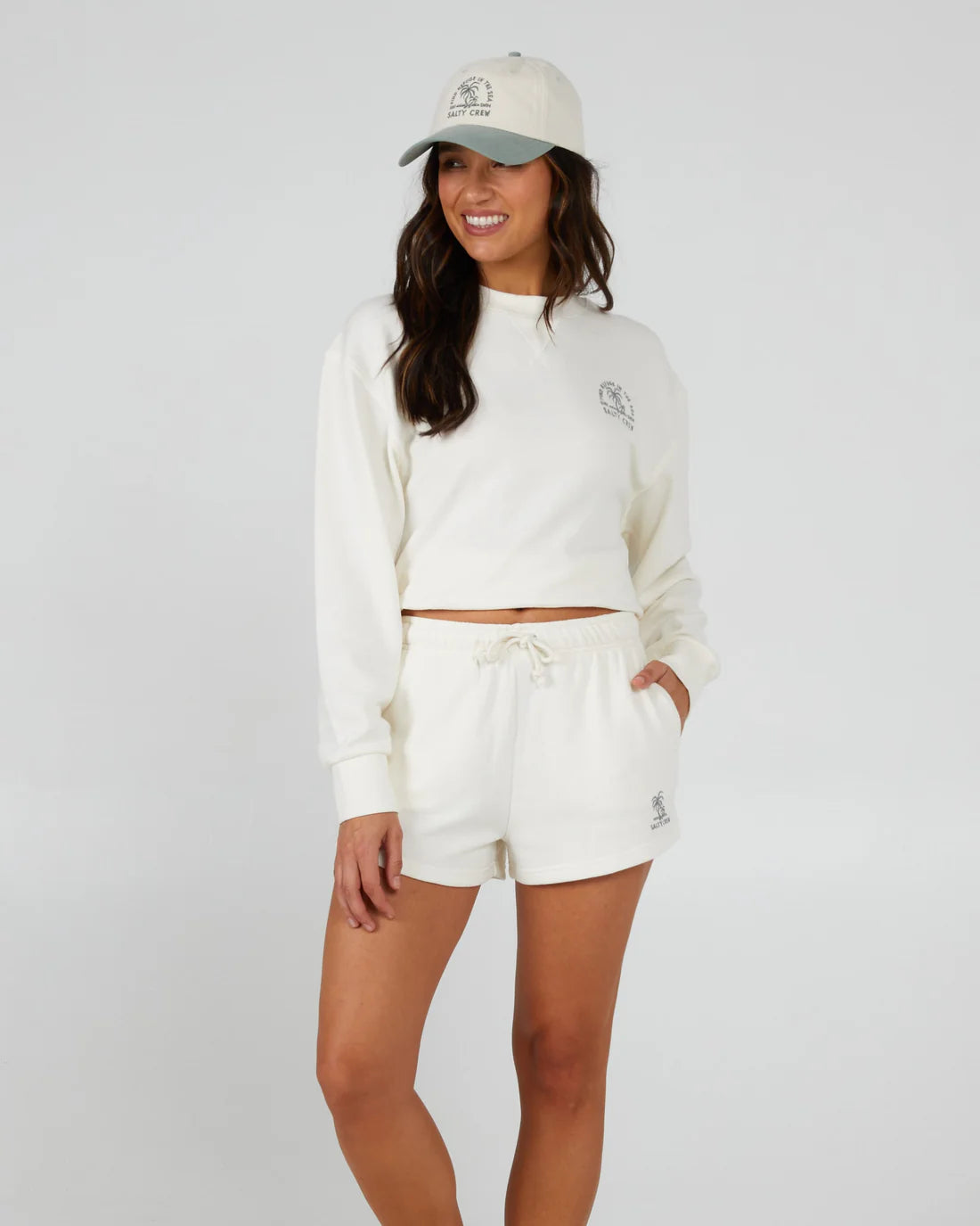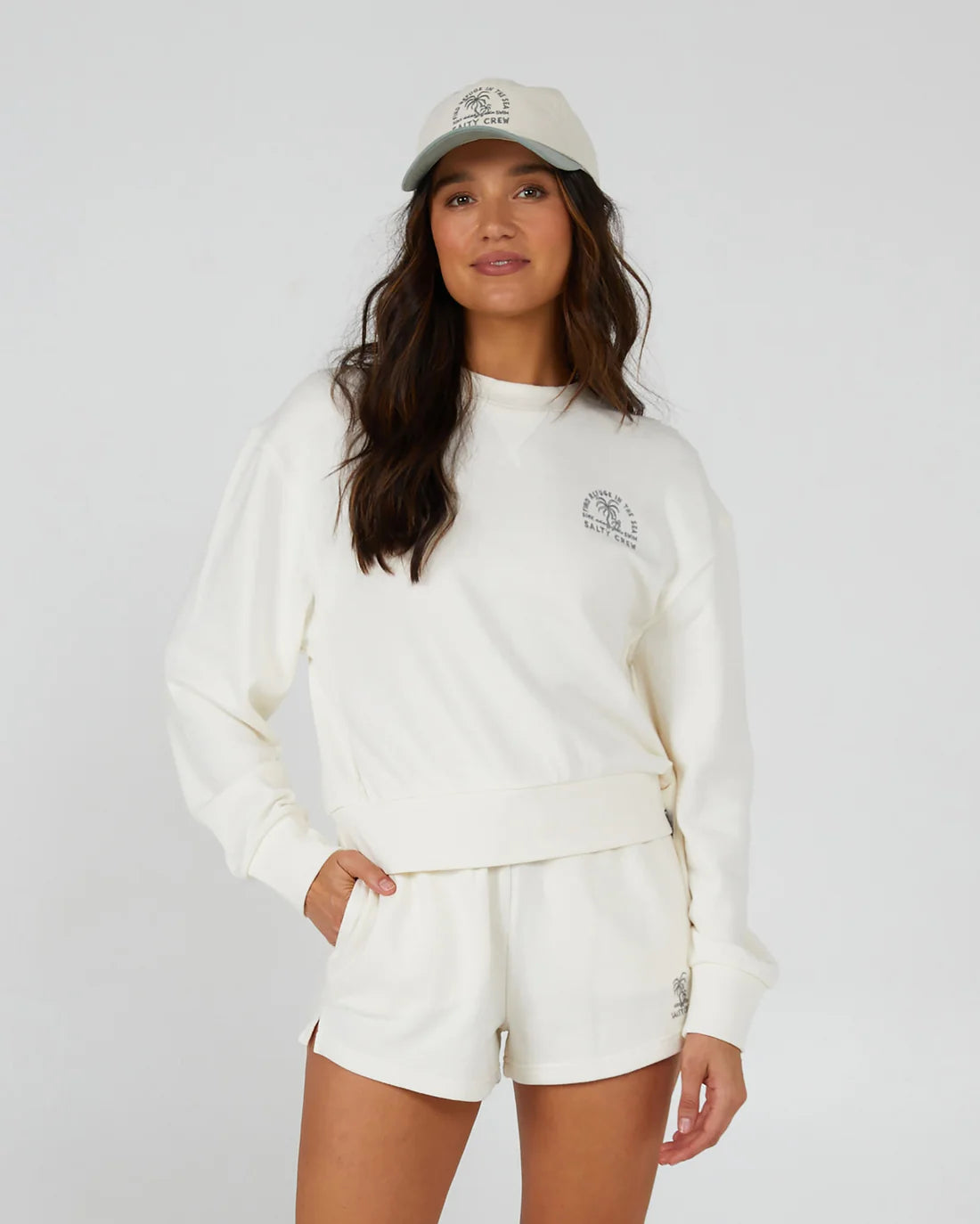 - Salty Crew clamp label at front hem