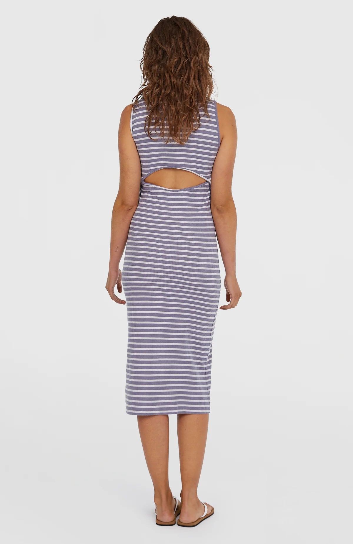 The Jess Midi Rib Dress takes you from the beach to the office in style. Designed with comfort in mind, this slim-fit ribbed dress is made from breathable fabric and features a beautiful back cut-out detail and subtle embroidery on the chest.